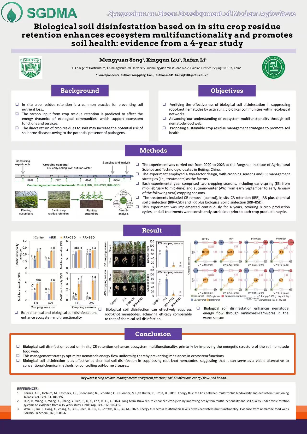 Mengyuan Song | Biologicalsoil disinfestation based on in situ crop residueretention enhances ecosystem multifunctionality and promotessoil health: evidence from a 4-year study |
